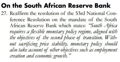 It seems cdes are confused about this resolution. It doesnt say change mandate to text written here. But says "flexible monetary policy to enable job creation". Which SARB is doing. Job creation is driven by Gov:pic.twitter.com/kR44Mzl2Ce