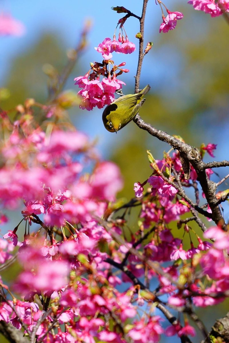 #2020年2月5日(水) 日中の車内は眠気を誘うくらいに温かい٩( ⌯᷄Д⌯᷅ )۶ファ~ 眠っ…#見頃は終わり の#河津桜 忙しく動きまわる#メジロ#濃いピンクの花 花が好きな人と繋がりたいpic.twitter.com/kxRGQcVaz7