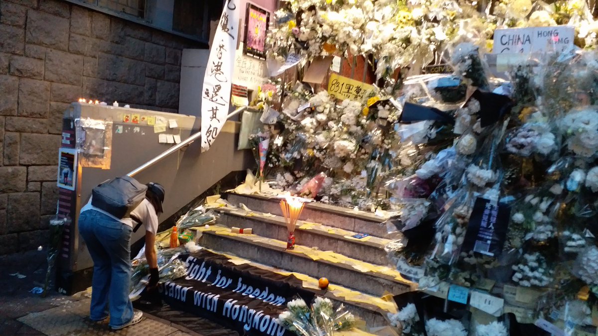 An increasing amount of citizens are packing Prince Edward Station to pay tribute to the three people who allegedly disappeared last week on Aug 31. An outpouring of white flowers and joss paper are burying the station entrance.