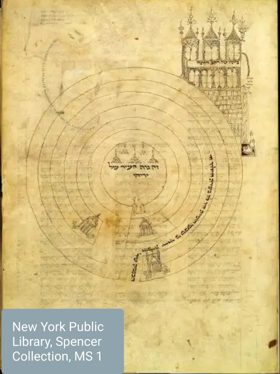 #TIL that the city walls of#Jericho were associated with the figure of the labyrinth in some#Hebrew manuscripts (visualising the 7 turns around the city performed by Joshua). Some#medieval codices display the same association, but the labyrinth represents here the whole citypic.twitter.com/M2diSm9ukG