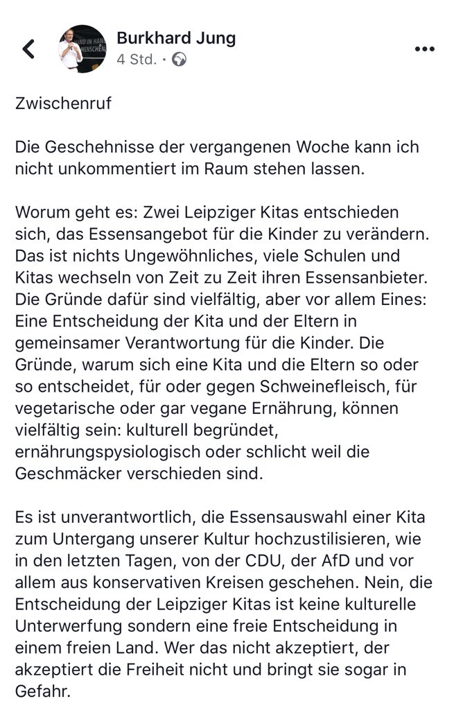 Ich bitte euch inständig, dieses Statement des Leipziger Oberbürgermeisters Burkhard Jung zu lesen und darüber nachzudenken. Oder wie