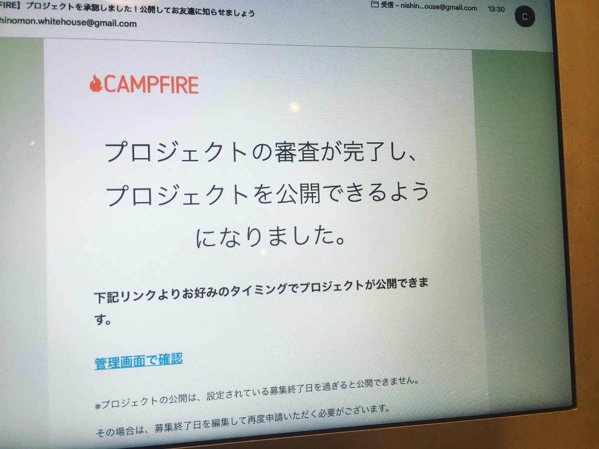 CAMPFIREの審査通りました!16時目処に #西の門ホワイトハウス のクラウドファンディング公開します!pic.twitter.com/HG0ansIp0t
