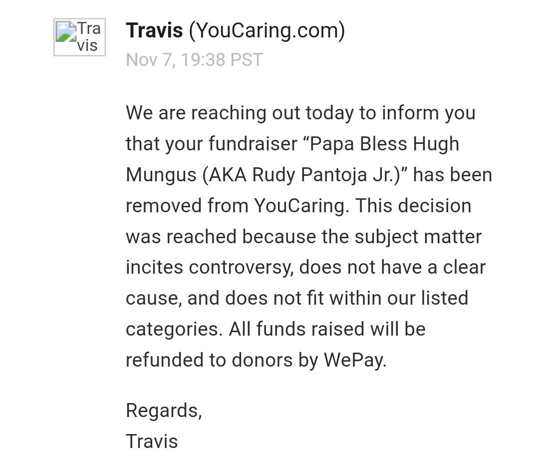 @youcaring your company is fucking trash how are you gonna shut down a fundraiser for a man with cancer. Scum. -