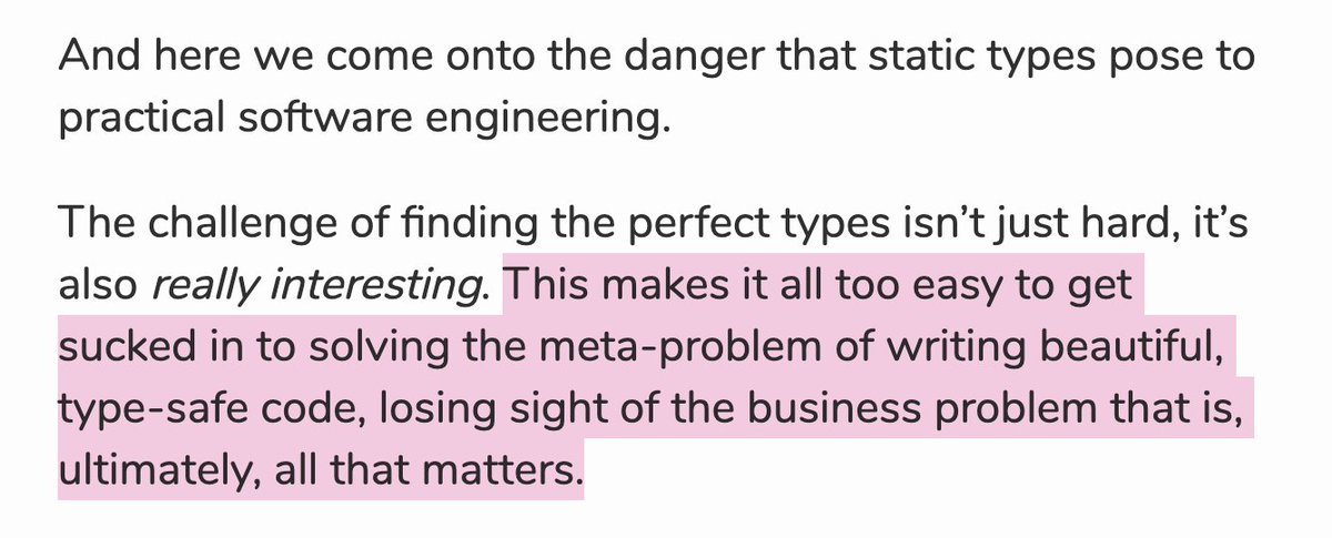 Solving entertaining puzzles vs solving problems https://alexnixon.github.io/2020/01/14/static-types-are-dangerous.html …pic.twitter.com/6NmtsUmaID