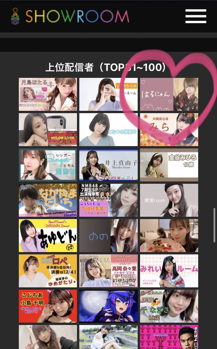 SHOWROOM AWARD2020 上位配信者TOP30〜100に 私が入ってましたあ