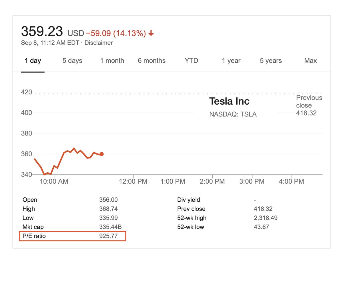 @Tesla P/E ratio has cratered all the way to... *926*! Market cap is still 7x@GM's (up 8%).@elonmusk's company remains a great rebuttal to the "short termism" argument, popular in some corporate circles because it lets incremental companies off the hook.pic.twitter.com/9gqVx043Qw