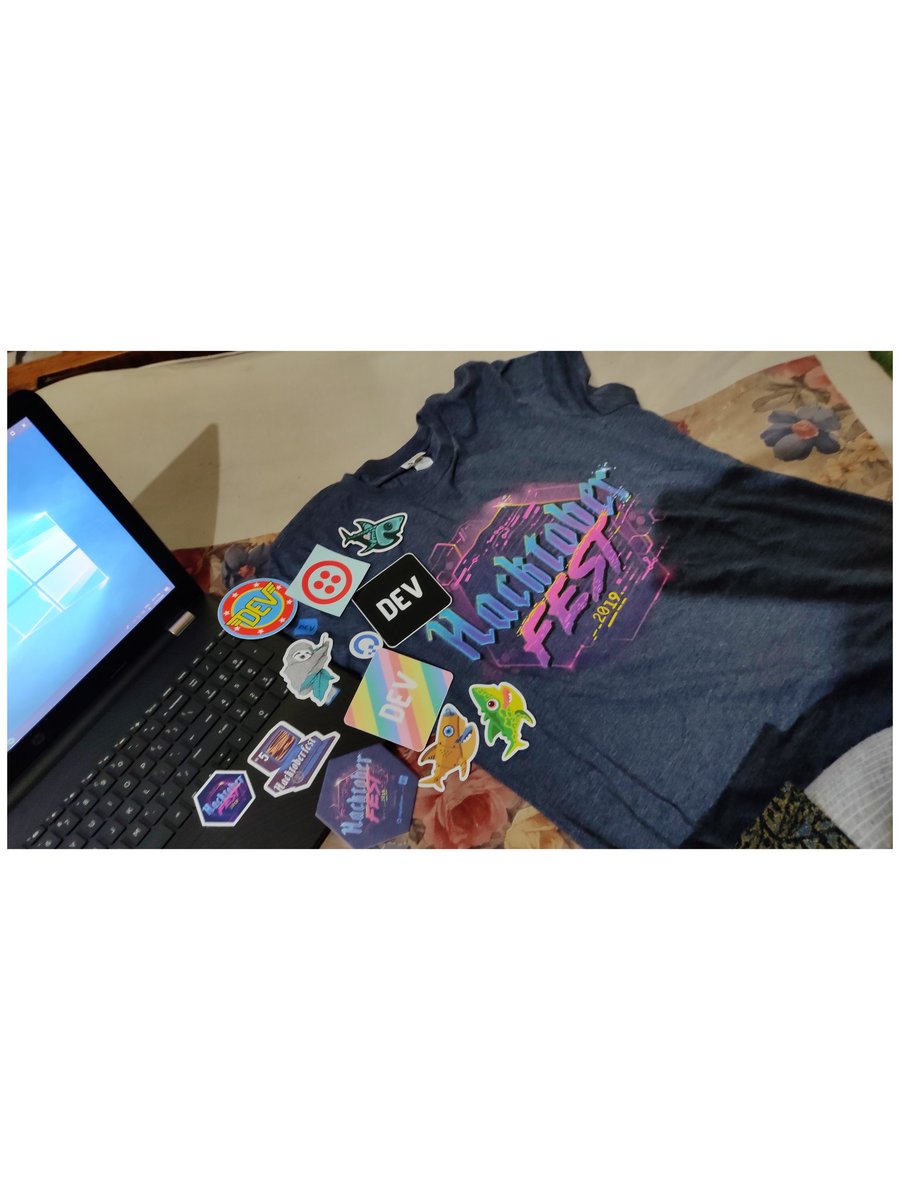 #hacktoberfest2019 by@digitalocean and@ThePracticalDev , just by completing the pull request challenge i recibe this nice shirt and this cool stickers