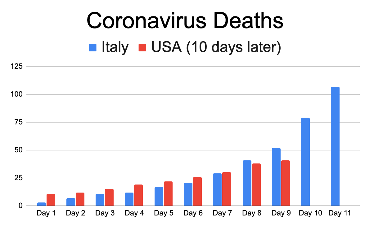 ("Day 1" is charted as Feb 23 in Italy, Mar 4 in USA)pic.twitter.com/zbjEAwiLt4