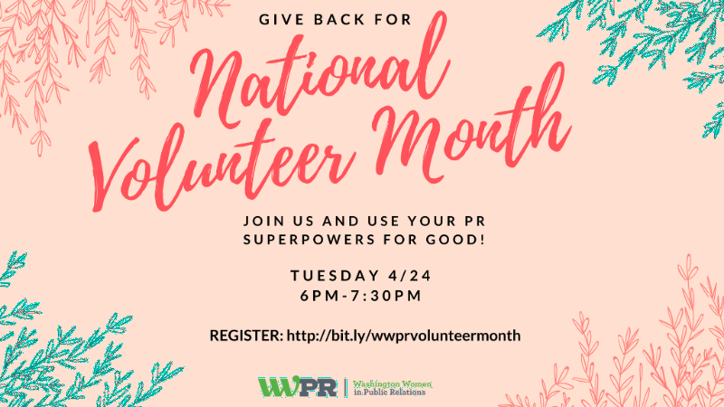 @WWPR's National Volunteer Month event tomorrow! Participants will meet with WWPR Pro Bono clients and share on-the-spot PR/communications advice with them. Join us: http://bit.ly/2Hp1YbC pic.twitter.com/oK7J5SlAss