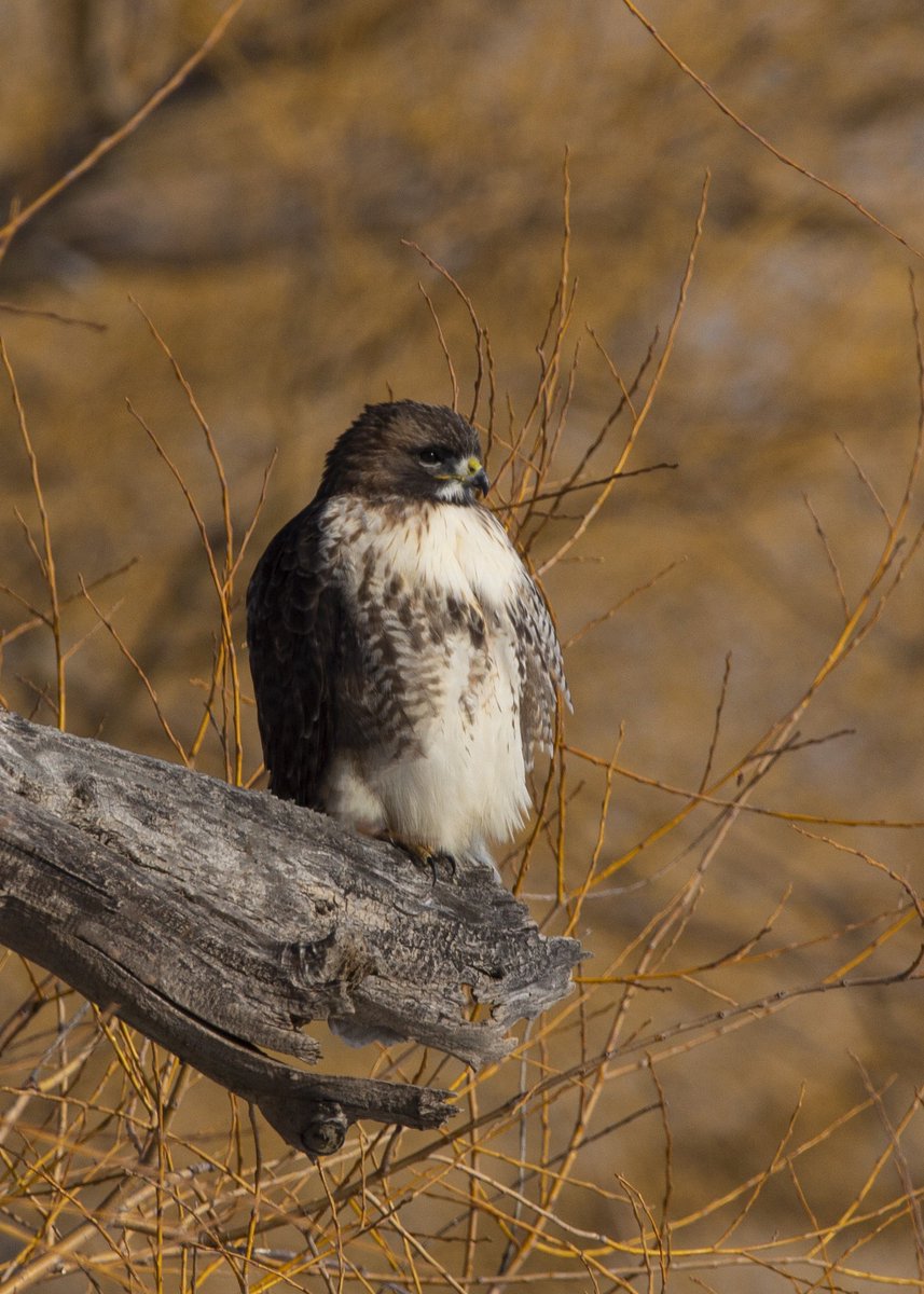 Red-tail Hawk soaking up the rays of the warm sun on a blustery