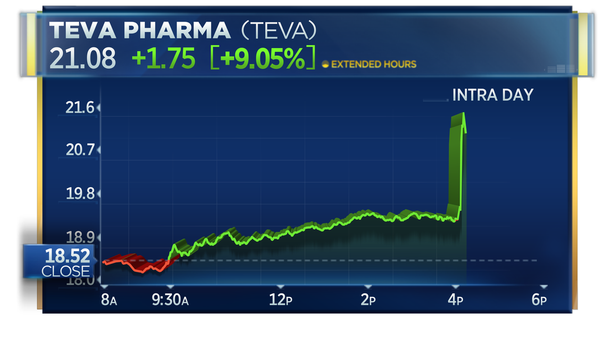 BREAKING: Warren Buffett's Berkshire Hathaway takes stake in Teva Pharma.; stock jumps after-hours. http://cnbc.com pic.twitter.com/hZUi1JGG1m