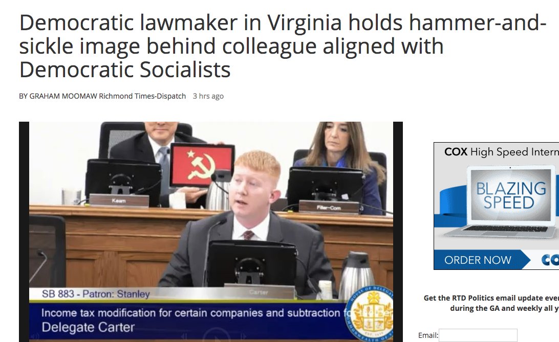 Oh yeah, the Democrat mocking Lee Carter in that video...he's so amazing at his job he accidentally voted with Va. Republicans last week. Oh, and he's a former lobbyist for Verizon.pic.twitter.com/2uDMdUnqJ8