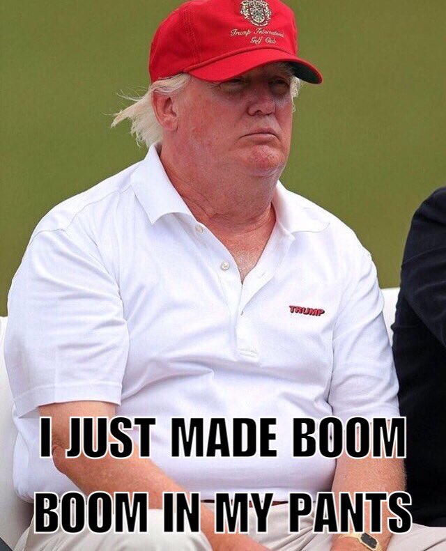 Hawkish = Bold enough to stand up to Russia, North Korea, China, Syria. #ResidentTrump is a fat baby diaper man in an ill fitting suit. pic.twitter.com/Y1yZYkJPsF