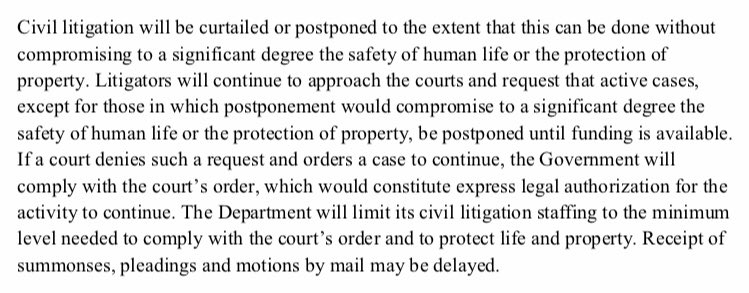 4. How attorneys in @TheJusticeDept’s Civil Division are expected to handle #2020census #citizenshipquestion lawsuits during government #shutdown according to DOJ contingency plans (waiting for NY ruling, CA trial starts Jan. 7, MD trial starts Jan. 22)👇 https://www.justice.gov/jmd/page/file/1015676/download … pic.twitter.com/FJY9JWO1xn