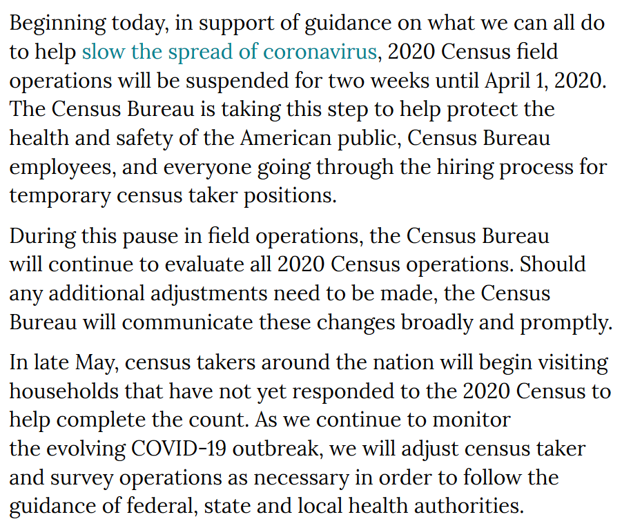 5. Here's my write-up on what temporarily pausing #2020Census field operations until April 1 means for the national head count