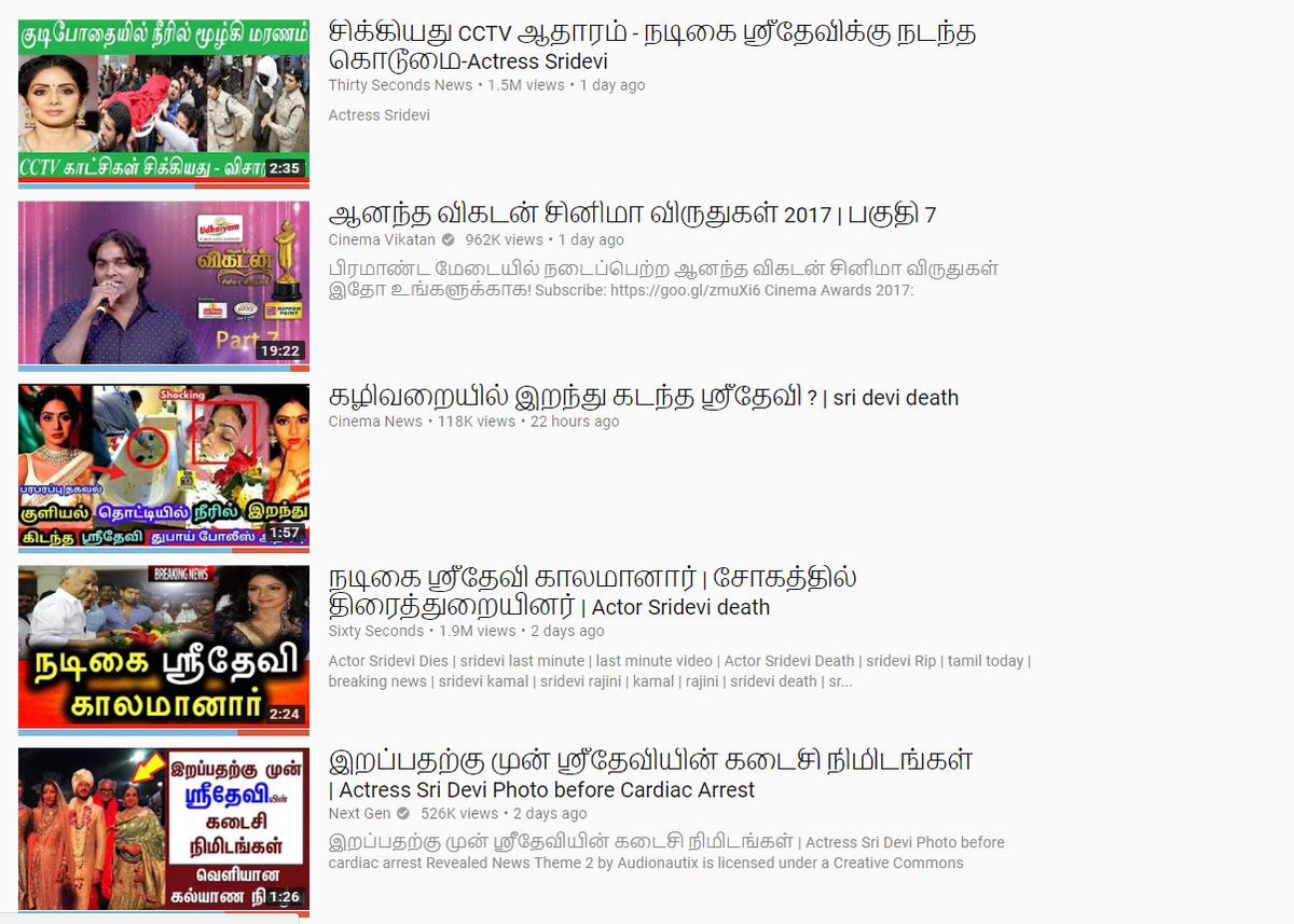 @TeamYouTube @YouTubeIndia @YTCreators These are the screen shots that i can provide just look in to the trending videos on #sridevi death row. so many fake conspriacy theories and misleading videos surrounding it. #sridevi #ConspiracyTheory #FakeNewspic.twitter.com/FWS3rfXNkc