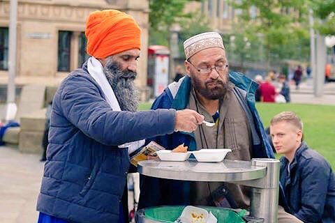a human feeding another human! Dont bring religion everywhere!