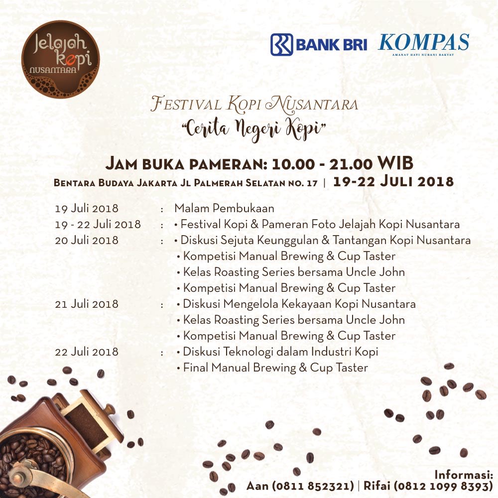 @BentaraBudaya Jakarta. Festival Kopi Nusantara merupakan kerja sama harian Kompas dan@BANKBRI_ID.pic.twitter.com/fsJBTAIO2e