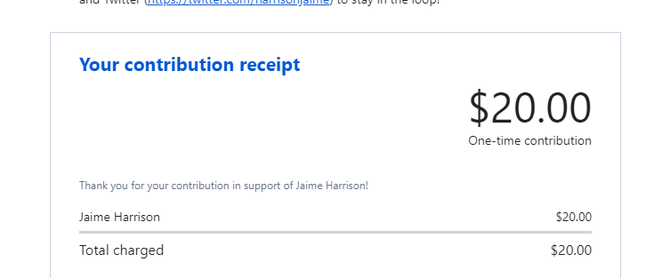 I donate to Jaime every chance I get! South Carolina needs Jaime Harrison!pic.twitter.com/WAmuz9BdJl
