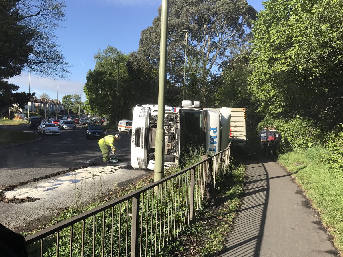 Lorry tips over, crushing railings at Rishington roundabout. This is happening about once a year now!pic.twitter.com/csKmkh81Wz