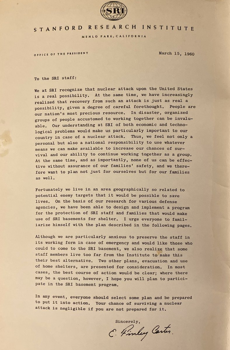 SRI’s basement fallout shelter was “virtually free” to staffers, who were advised to bring extra food and eating utensils.pic.twitter.com/ndxJLtTYue
