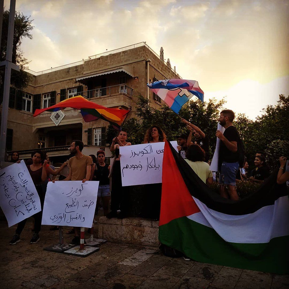 To be clear, this protest happened in *Israel*.https://972mag.com/queer-palestinian-protest-lgbt-violence/142586/ …