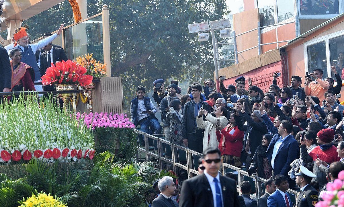 #RepublicDay Parade. This is a day to remember the remarkable individuals who gave us a comprehensive Constitution that ensures the well-being of 130 crore Indians.pic.twitter.com/JTzKzn0Gxx
