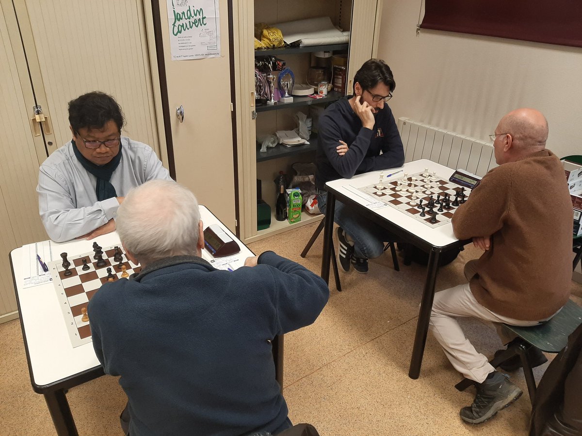 #échecs dans les locaux du Philidor#Mulhouse, autour de Stéphane Renard. Beaucoup de thèmes furent traités, dont les règles du Chess 960 !