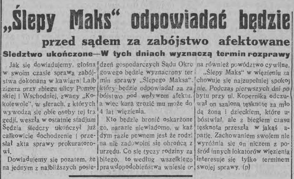 #ŚlepyMaks stanie przed sądem oskarżony o zabójstwo pod wpływem afektu.#Śledztwo zakończone - pisze Głos Polski 30 listopada 1929 roku#Łódź#historia#BakeOffItalia@policja_lodzka@MMLodzi@a_agata fot. z bloga http://wmrokuhistorii.blogspot.com/ pic.twitter.com/iKKn58oM4L