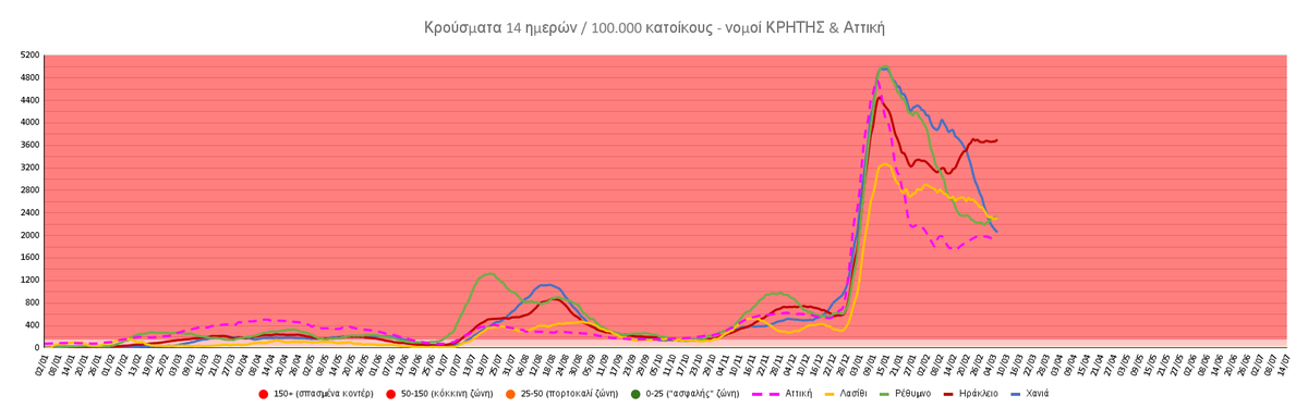 #Κρήτη: εγχώρια#κρουσματα 7 & 14 ημερών ανά 100.000 κατοίκους