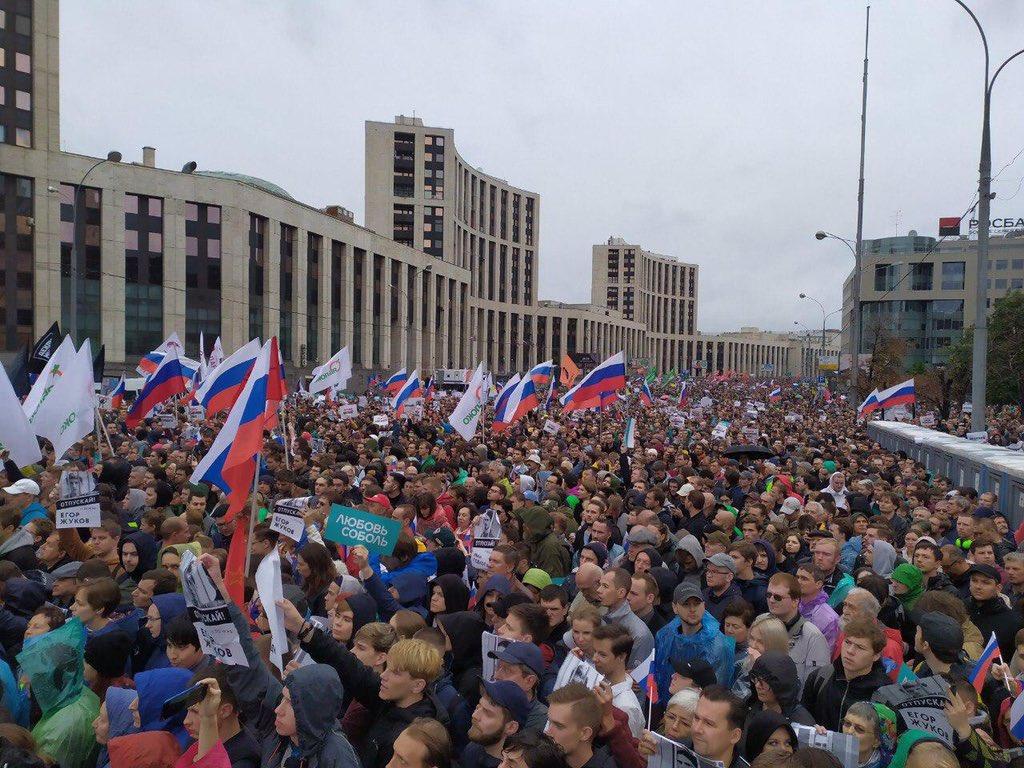 На мітынг на Пр. Сахарава ў Маскве прыйшлі ўжо больш за 7 тысяч чалавек. Гэта чарга на ўваход. Крыніца: