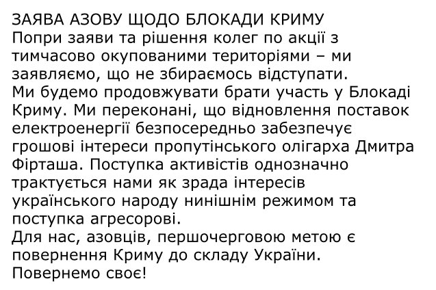 ЗАЯВА АЗОВУ ЩОДО БЛОКАДИ КРИМУ