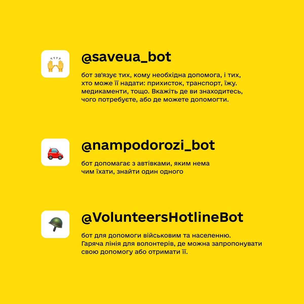 #важливо Корисні Telegram боти, щоб надати чи отримати допомогу: pic.twitter.com/KEknrEY3gY