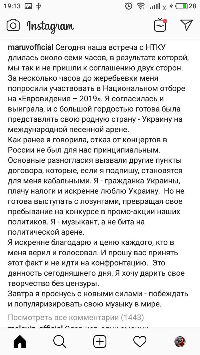 #марув отказалась подписывать то, что подписала#джамала? А именно, политизированный контракт требующий пиарить существующий полит режим.#марув ты молодец, будь подальше от грязной политики и люби свою страну