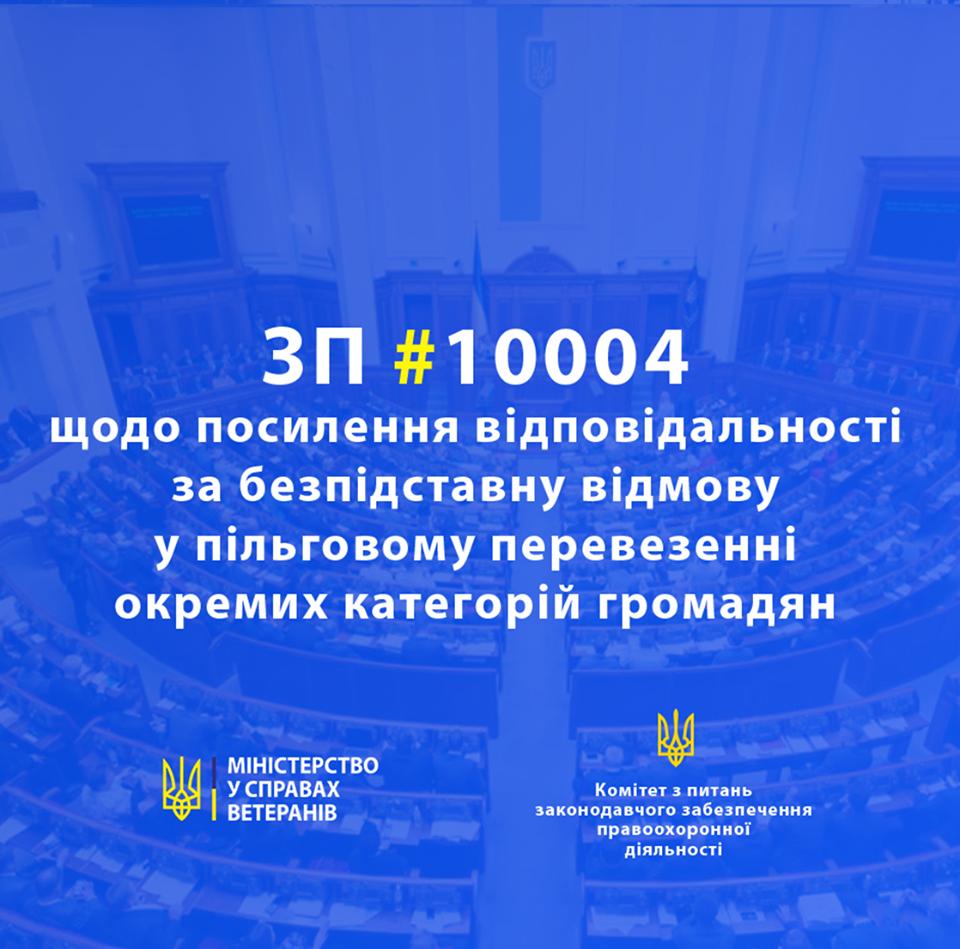 #Рада8 прийняла за основу#ЗП10004 Про внесення змін до статті 133-1 Кодексу України про адміністративні правопорушення щодо посилення відповідальності за безпідставну відмову у пільговому перевезенні окремих категорій громадян