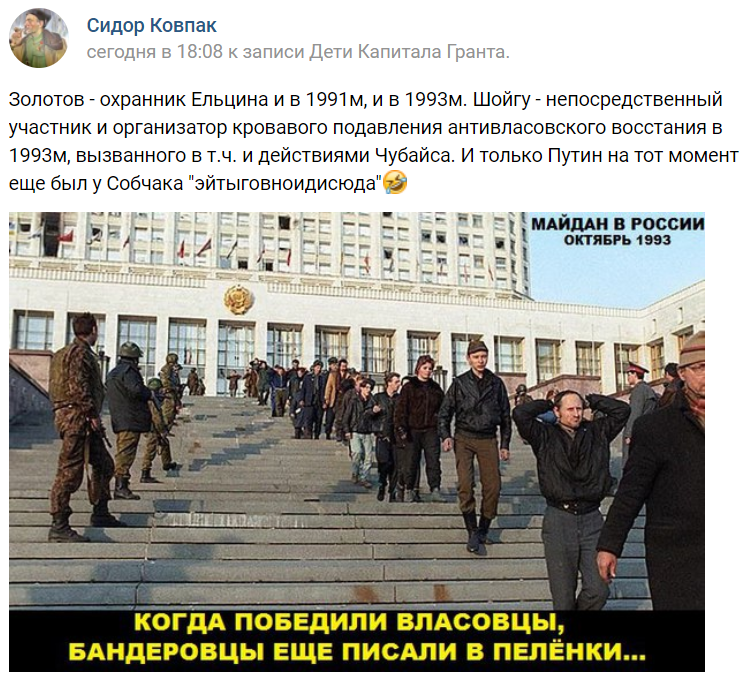 #Коржаков:#Золотов пришел ко мне слесарем, гайки крутил. Тогда он тянул на олигофрена, сейчас уже на имбецила https://gordonua.com/publications/korzhakov-zolotov-prishel-ko-mne-slesarem-gajki-krutil-togda-on-tyanul-na-oligofrena-sejchas-uzhe-na-imbecila-349212.html … -