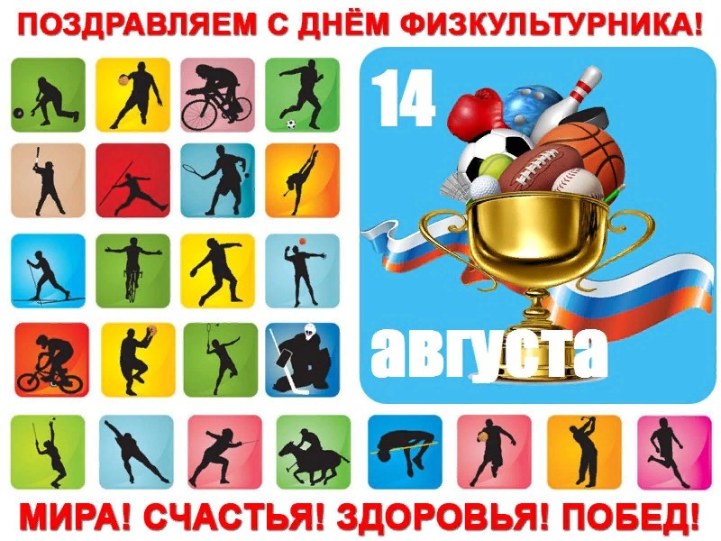 Сегодня мы поздравляем спортсменов, любителей спорта и всех желающих им заниматься с праздником Днём физкультурника.