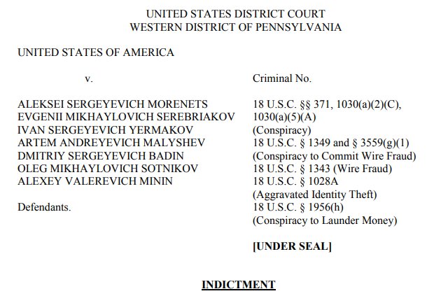 Here is the 41 page indictment of the seven GRU Unit 74455 "Fancy Bear" hackers: https://www.justice.gov/opa/page/file/1098481/download …