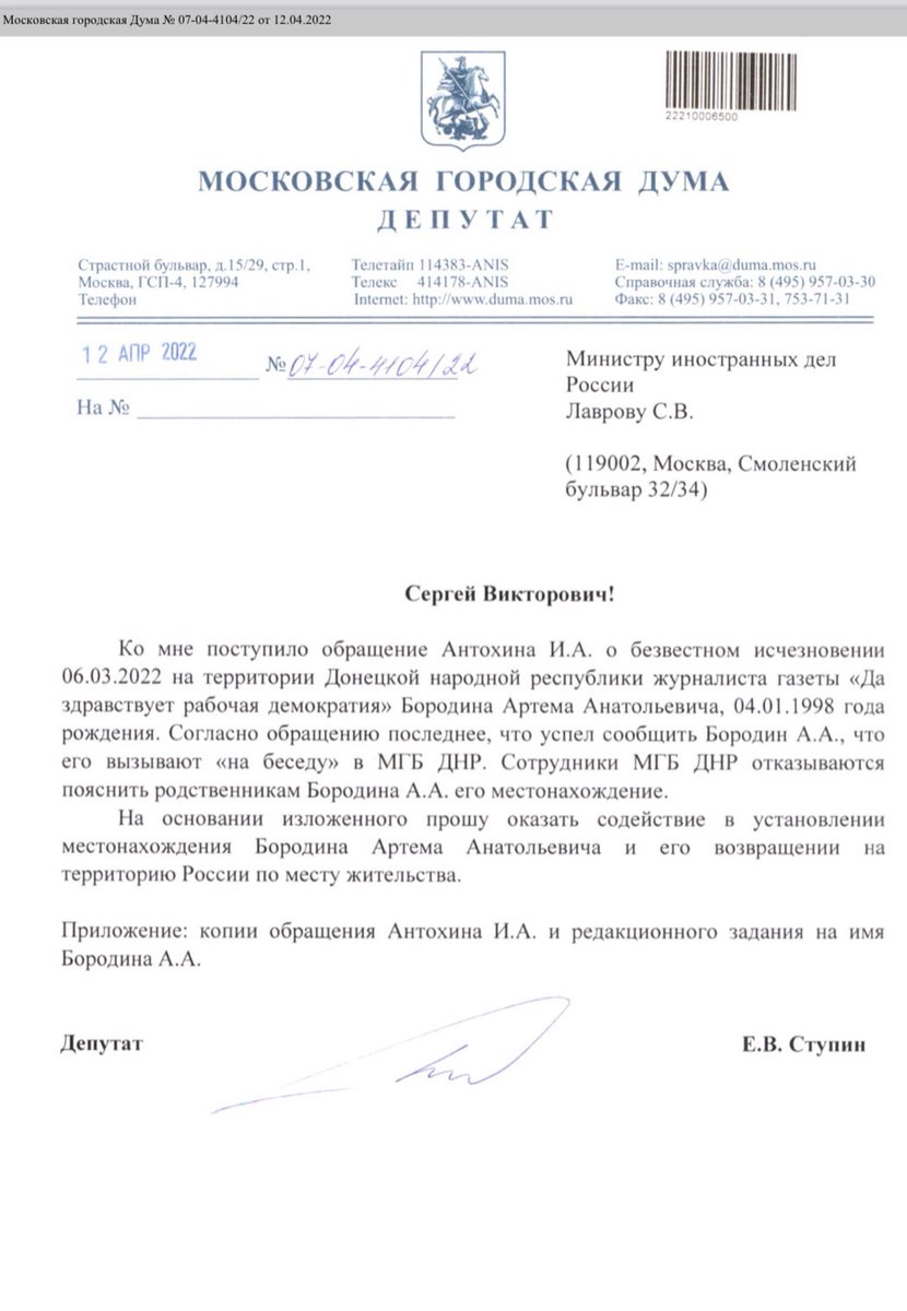 В Донецке месяц назад пропал гражданин России Артем Бородин, 1998 г.р. Еще до начала спецоперации он приехал навестить родственников (родился в Донецке). Вернуться не успел.6 марта его вызвали в МГБ ДНР, с того момента об Артеме сведений нет. Направил запросы в