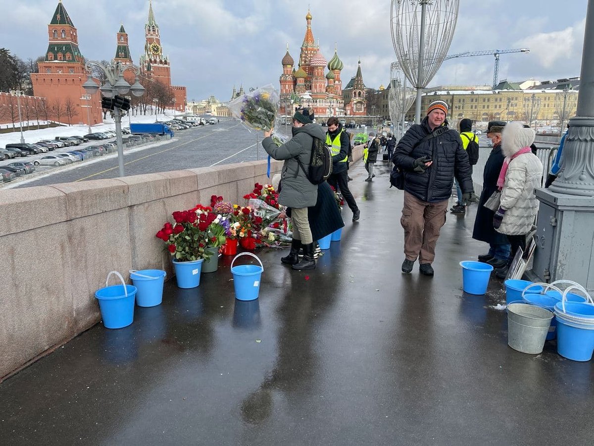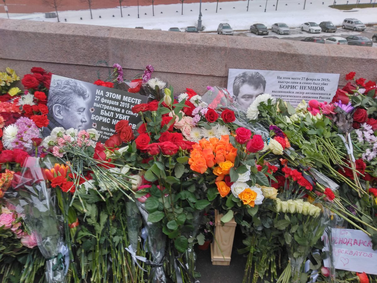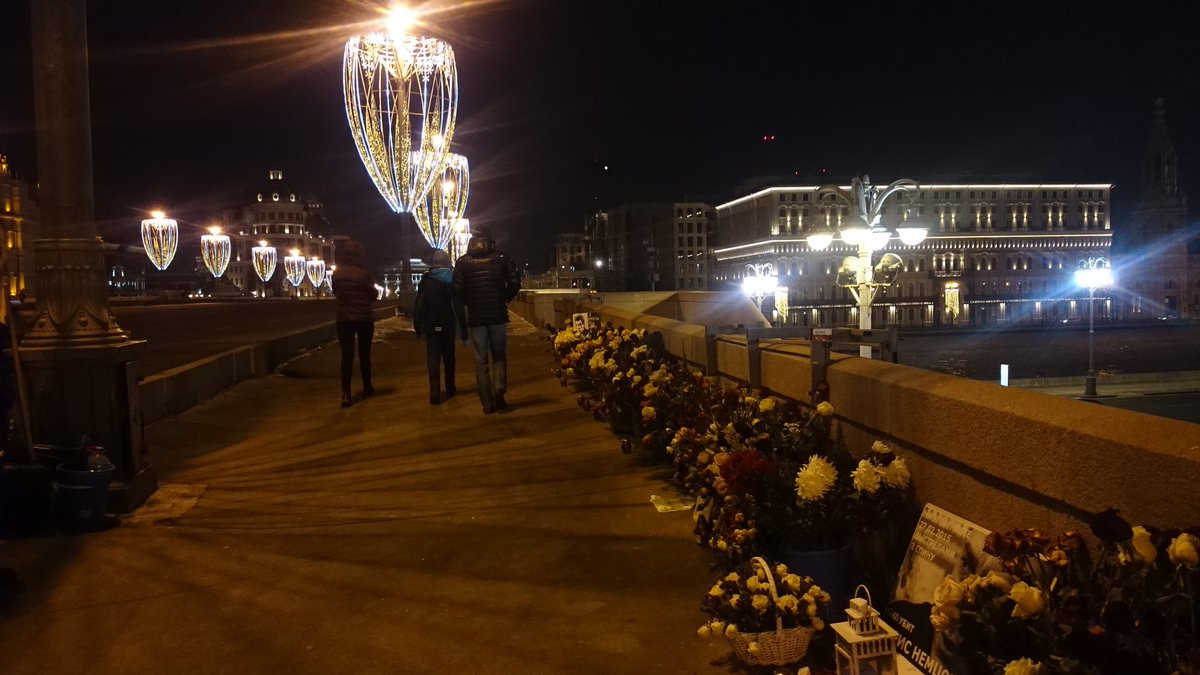 Today, on the sixth anniversary of the assassination of Russian opposition leader Boris Nemtsov, people have been laying flowers since the morning on the spot where he was killed on Bolshoy Moskvoretsky Bridge (Moscow)