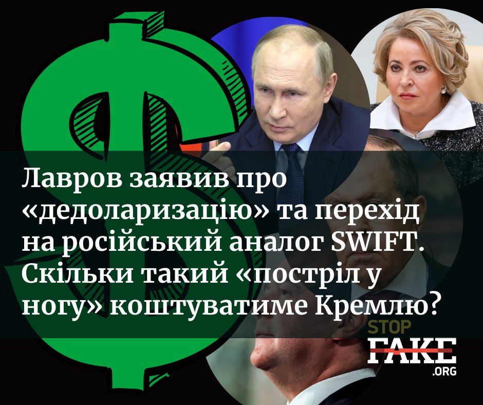 #СергійЛавров заявив, що#Росія буде «різко скорочувати» валютні резерви в $$$. До того ж країна буде йти шляхом впровадження власного аналога#SWIFT.#StopFake вирішив дізнатися у економічних експертів, чи можливо Росії обійтися без#доларСША та SWIFT: https://bit.ly/3s5WCa6 pic.twitter.com/6bF59aTnu5