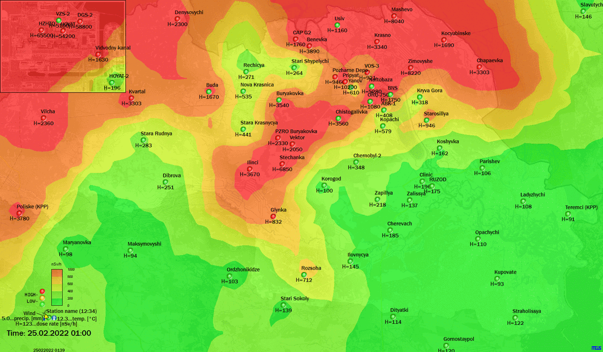 Радіоактивний пил здіймається в Чорнобилі внаслідок бойових дій російської армії. Все більше станцій показують критичні значення, на реакторі було виміряно 65500 нЗв/год.