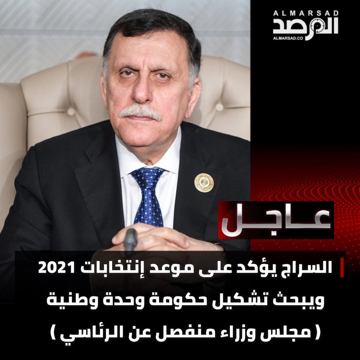 عاجل > السراج يؤكد على موعد إنتخابات 2021 ويبحث مع مجموعة نواب تشكيل حكومة وحدة وطنية ( مجلس وزراء منفصل عن الرئاسي ) بعد صعوبات الحوار السياسي.