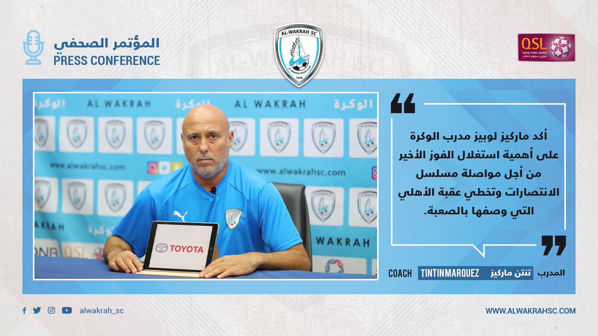 ماركيز لوبيز مدرب #الوكرة: علينا مواصلة العمل لتحقيق الانتصار على#الأهلي