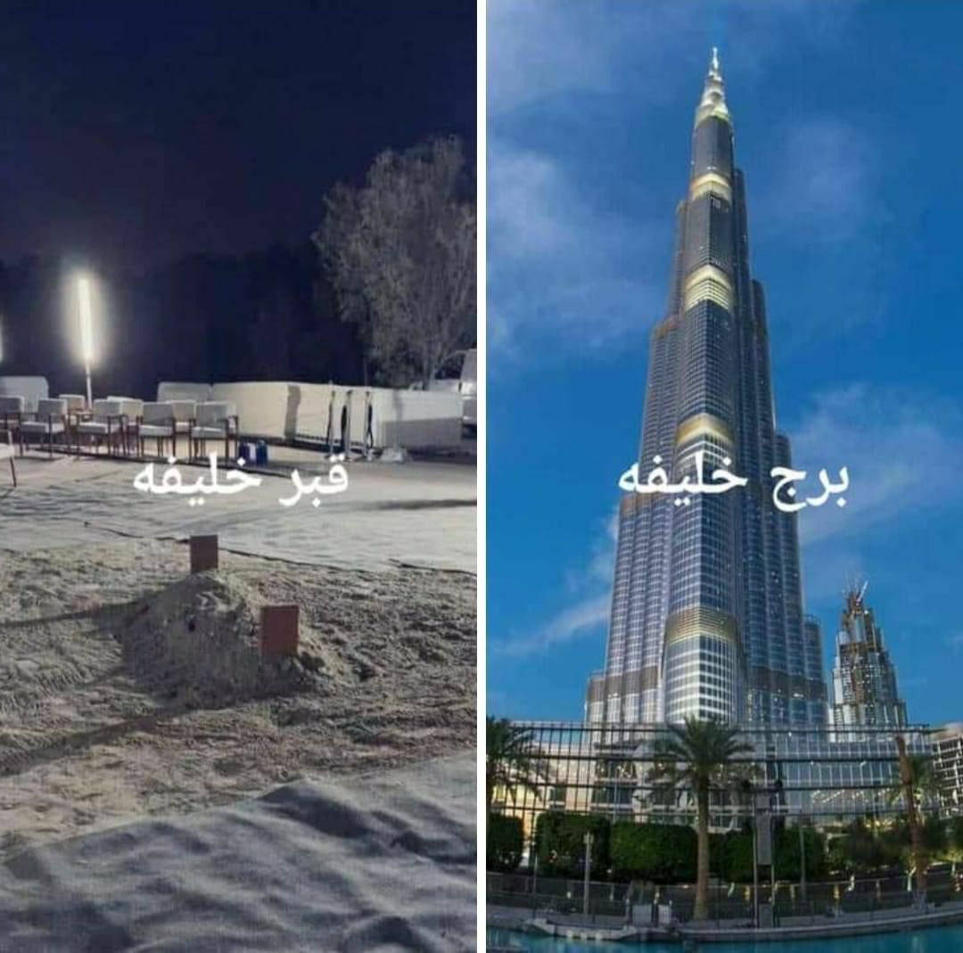#برج_خليفة#قبر_خليفة! هنا في تلك الحفرة المتواضعة وتحت هذه الرمال، يرقد الشيخ خليفة بن زايد، حاكم الإمارات، الثراء والسلطة والجاه والنفوذ، أمسوا هنا، تحت هذه الرمال، ليأتي ربه وحيداً فرداً مجرداً من كل ما ملك فهل من مُتعظ؟ فهل من مُدّكر؟ لن ينفعك إلا عملك الصالحpic.twitter.com/d524YnPd03Show this thread -