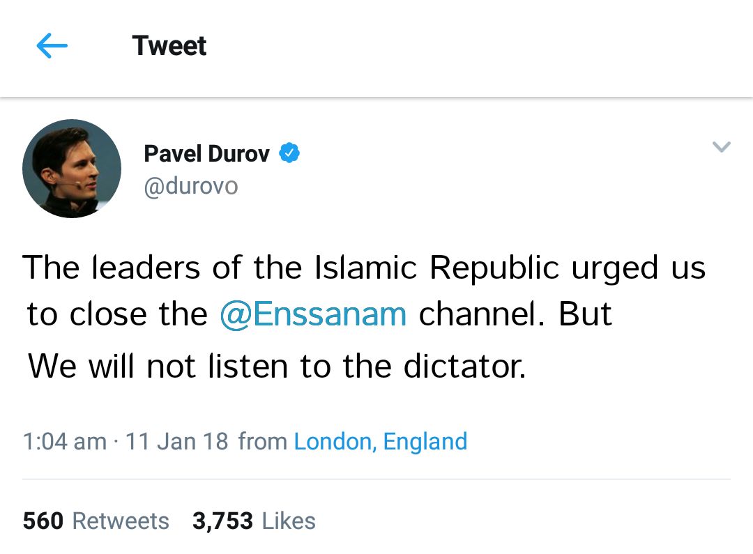 #فوری#پاول_دورف: سران جمهوری اسلامی ازما خواستند کانال#به_نام_انسان بسته شود