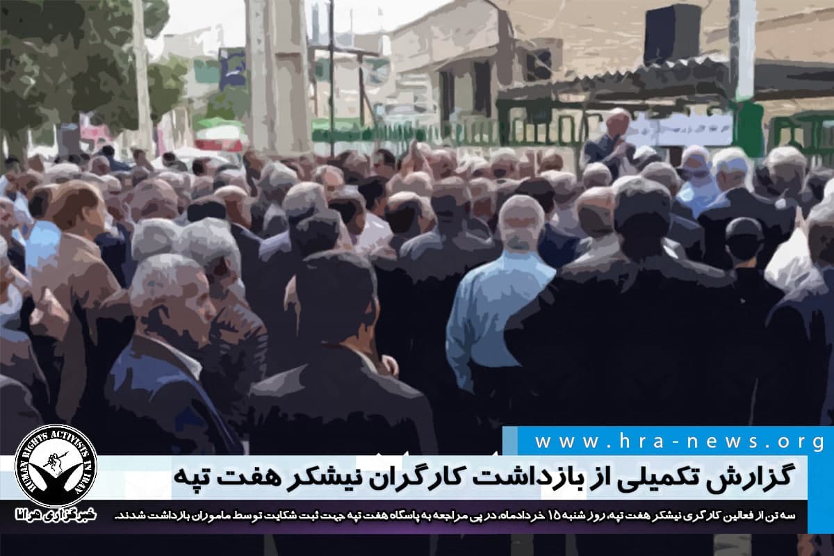 #هفت_تپه، روز شنبه ۱۵ خردادماه، در پی مراجعه به پاسگاه هفت تپه جهت ثبت شکایت مبنی بر مورد ضرب و شتم قرار گرفتن توسط عوامل مالک پیشین این شرکت طی تجمع اعتراضی کارگران،#بازداشت شدند./۱#فعال_کارگری،#تجمع،#کارگران https://www.hra-news.org/2021/hranews/a-30395/ …pic.twitter.com/KraJl4TIxI