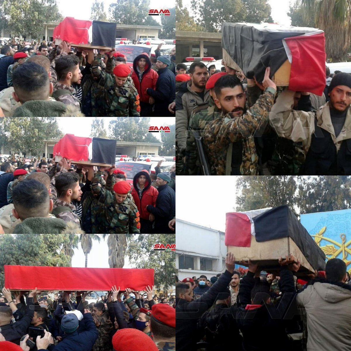 #حمص: وصول جثامين شهداء طريق "#تدمر -#دير_الزور" إلى المشفى العسكري في حمص والبدء بمراسم تشييعهم إلى مثواهم الأخير في مقبرة الشهداء "الفردوس ".pic.twitter.com/XrObxJaCjh