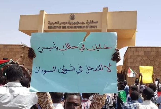 المتظاهرين السودانين من امام السفاره المصريه فى السودان يوجهون رساله للسيسى