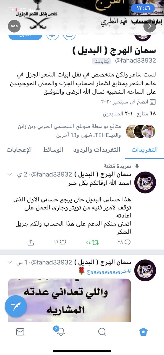 حساب اخوانا الشاعر ومتذوق الجزل #سمان_الهرج#حساب_يستحق_المتابعه_والدعم#ابداع#قصيد#جزل#ابيات_شعرpic.twitter.com/felQeJklJg